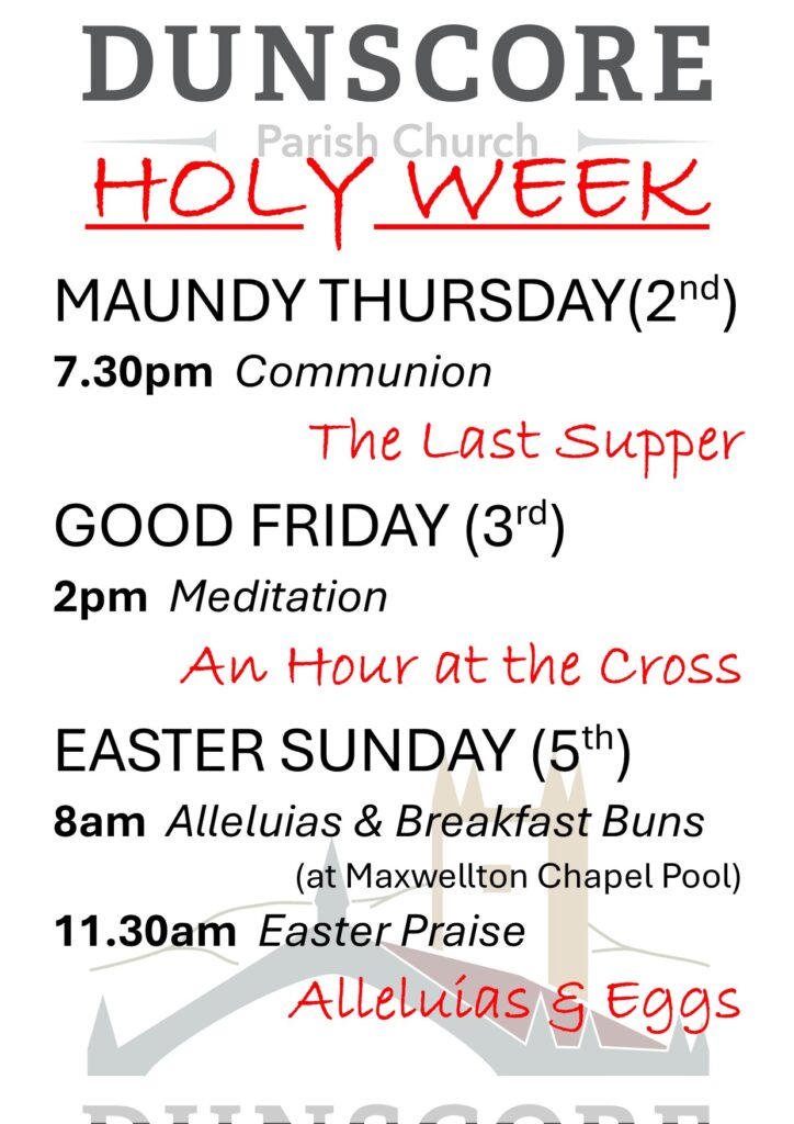 We also step into Holy Week.  A time of drama as Jesus approaches Calvary.  We mark this on Thursday by sharing Communion as we recall Jesus’ Last Supper with His Disciples.