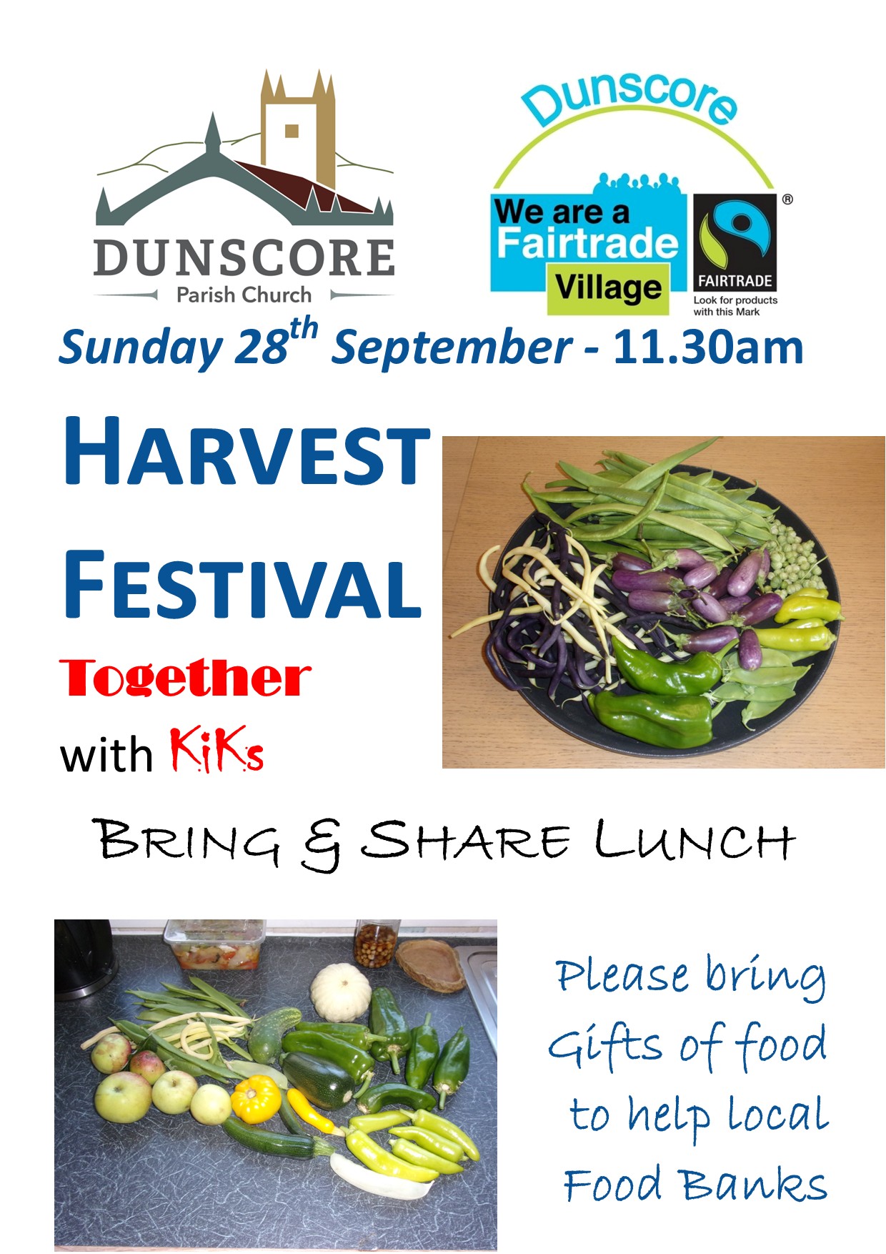 Our Harvest Festival service will be held in Dunscore Church at 11:30am as normal, however, as it’s the fourth Sunday of the month our *KiKs (Kids in Kirk) service will also be taking place at the same time.